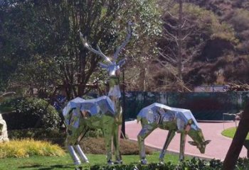 玻璃鋼雕刻仿梅花鹿雕塑,為池塘草坪添彩